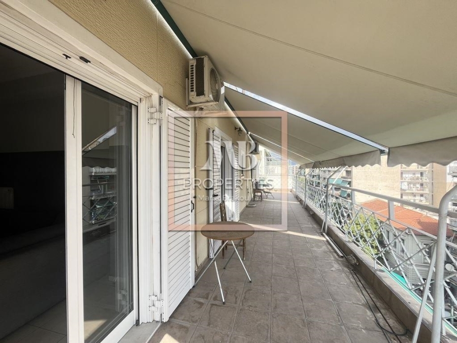 For rent on Acharnon Avenue, just a few meters from Victoria Square, in a well-maintained apartment building with proper management, a penthouse apartment of 93 sq.m. with a large veranda offering unobstructed views of the city. The apartment consists of a living room with dining area, a partially equipped kitchen with its own storage room, three bedrooms (one of which is auxiliary), and one bathroom. It features functional central oil heating, a solar water heater, and air conditioning.